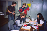 1215, Blue House Lodge, Punta Arenas. Over a cup of coffee we -Martin, Gerke, Ronald and I- discuss what preparations have to be made, before collecting our air shipped cargo surplus on Monday and continuing our journey to the park Torres del Paine. This morning, we were already out in the village to test and buy an impressive amount of candy bars, but it doesn´t even match half of the amount requiered. Ignoring the candy-bar-challenge, we now focus on were to buy fuel and gaz for our stoves, jerry cans for water storage and a simple shovel we forgot to pack for the trip.