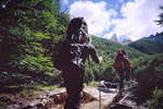 0900, trekking trail to Base Camp, Torres del Paine. Packed with about 30 kilos each, we have left our campsite for over an hour ago. Steadily, we make our way up the track witch leads to our expedition Base Camp. Yesterday, when we first ferried our loads up there, we walked among loads of tourists, all eager to get catch a glimpse of the central tower we intend to climb. This morning though we see hardly any people at all; despite the mild temperature, the weather is getting nasty. Along with the darkened sky, drizzle has come in and the wind has picked up in force. Gusts of wind throw us off balance from time to time, and passing a distinct section of the track –referred to as ´wind corner´- we hardly manage to walk at all.