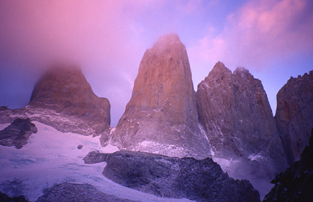 1300, belay 11, Torres del Paine. Ron has just started up the pitch, and is slowly making progress. Fresh snow has covered most of the face, and he is clearly having trouble to distinguish good cracks from shattered rock. Rock climbing in these conditions is indeed all but simple. As I follow him with my eyes, calmly waiting for him to arrive at belay 12, I hear voices just below. Gerke and Martin must be just below me already, and with them the haul bag we left at belay 4 a couple of days ago. I encourage Ron to speed up, well knowing that it´s useless, but hoping to get this train moving a bit.